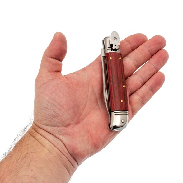 Модель B5122 от Витязь создана для тех, кто ценит традиционный подход в дизайне и конструкции. Это компактный автоматический инструмент с узнаваемыми очертаниями и простым принципом работы. Он легко справится с повседневными мелочами и станет надежным спутником на каждый день.