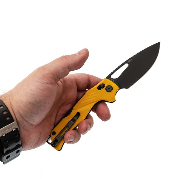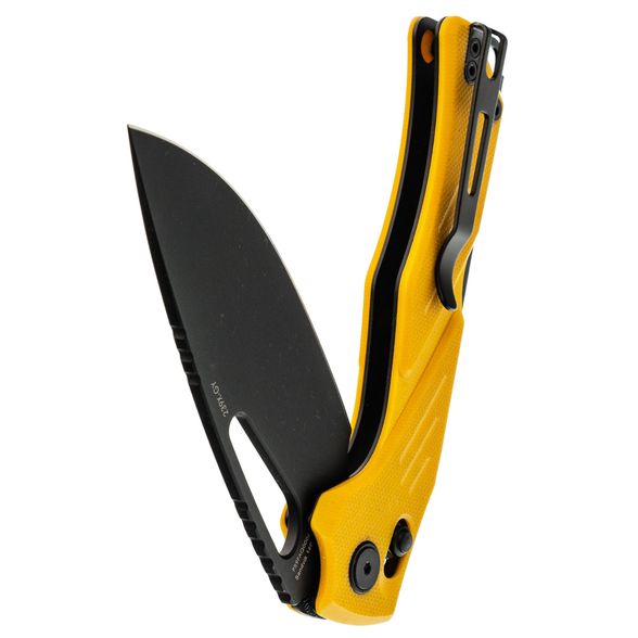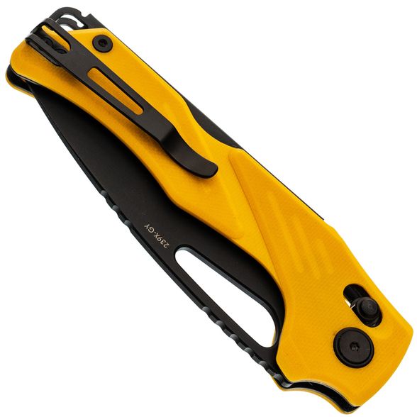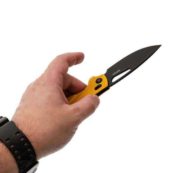 Рукоять из микарта сохранила свою эргономичную форму, но накладки были доработаны. Интегральный лайнер обеспечивает прочность и надежность конструкции, а накладки из стеклотекстолита G10 яркого желтого цвета придают ножу уникальный внешний вид. Контраст черного клинка и желтых накладок делает дизайн смелым и запоминающимся. Замок Ambi-Lock удобен как для правшей, так и для левшей, а переставляемая клипса позволяет настроить нож под левую руку. Нож этого типа надежный и функциональный инструмент, который подойдет для различных задач в повседневной жизни.