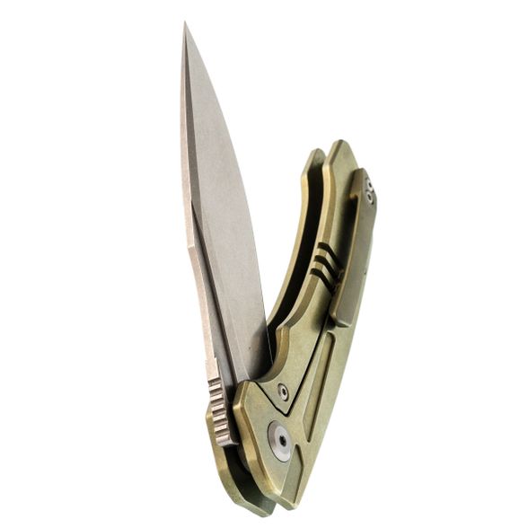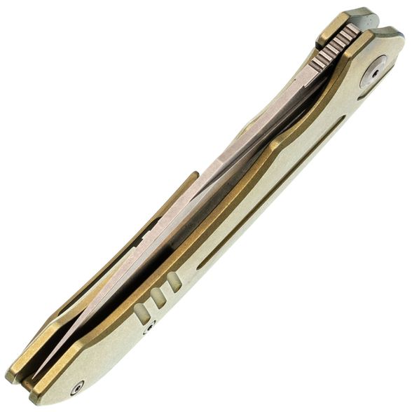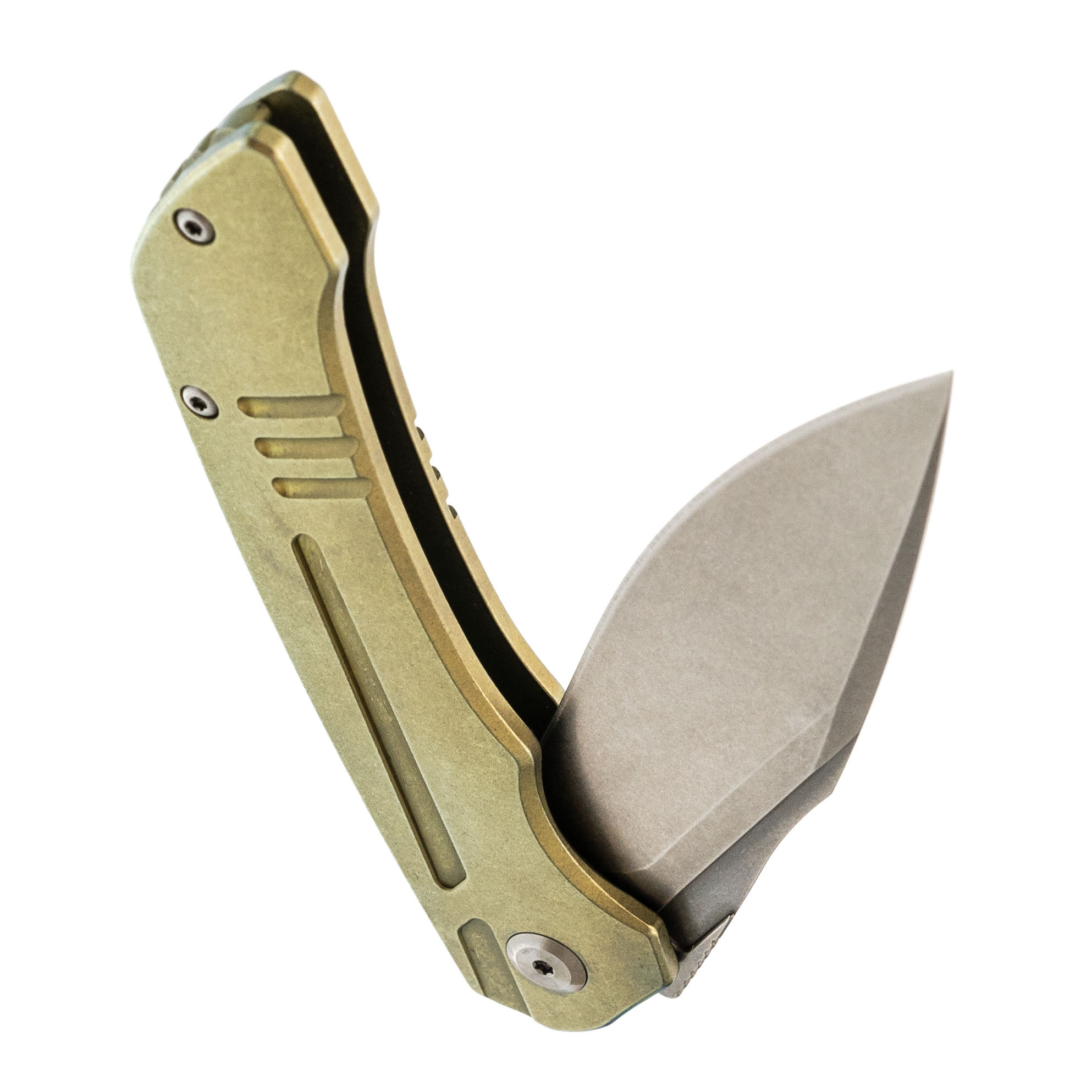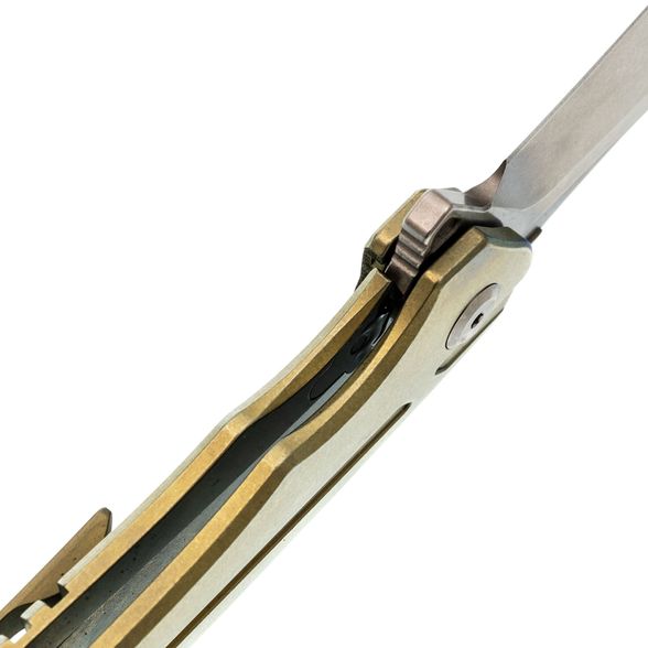 Рукоять из титана имеет лёгкий изгиб, который точно ложится в ладонь. Фрезеровка придаёт цепкость и визуально выделяет нож - в нём чувствуется стиль и современность. Карманная клипса удобна, нож почти не ощущается в кармане, но всегда под рукой, когда нужен.