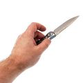 Узкий клинок с универсальным профилем Drop-Point подходит для самых разных задач - от точных надрезов до повседневных дел. Высокие прямые спуски дают чистый рез без усилий. Открывается клинок плавно и легко - механизм Front Flipper срабатывает интуитивно и быстро.