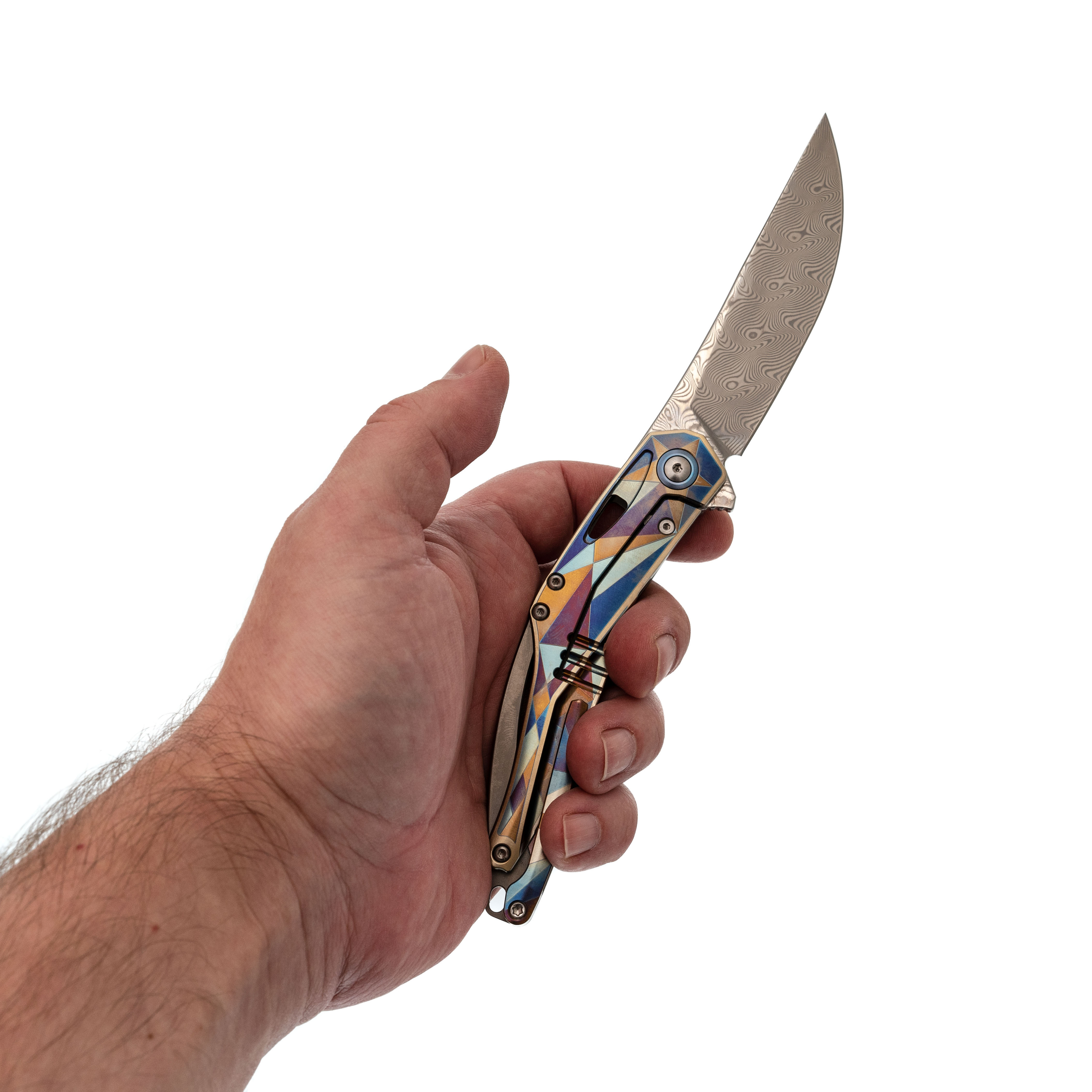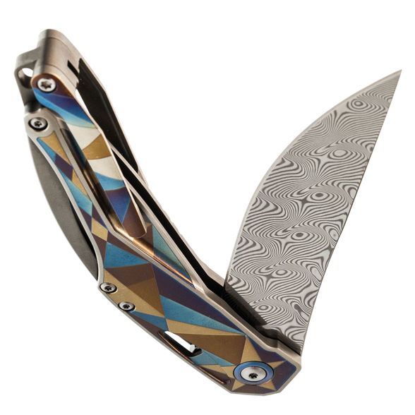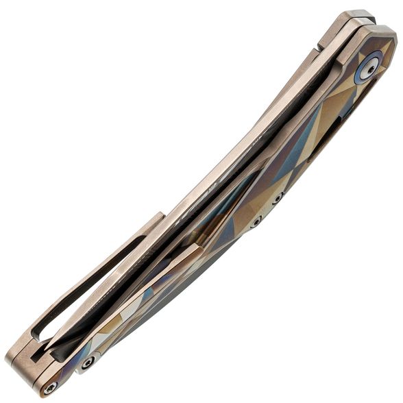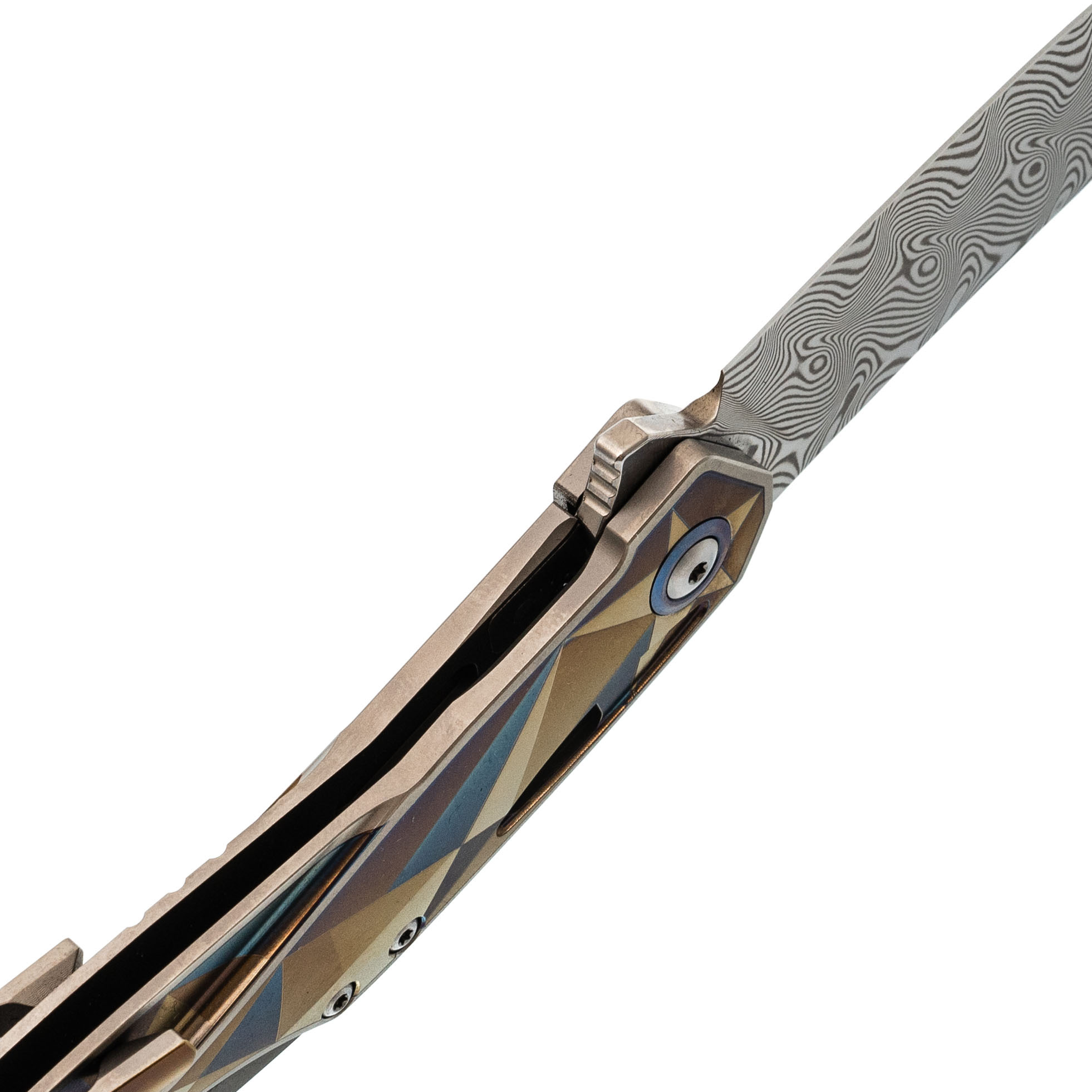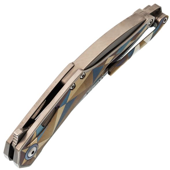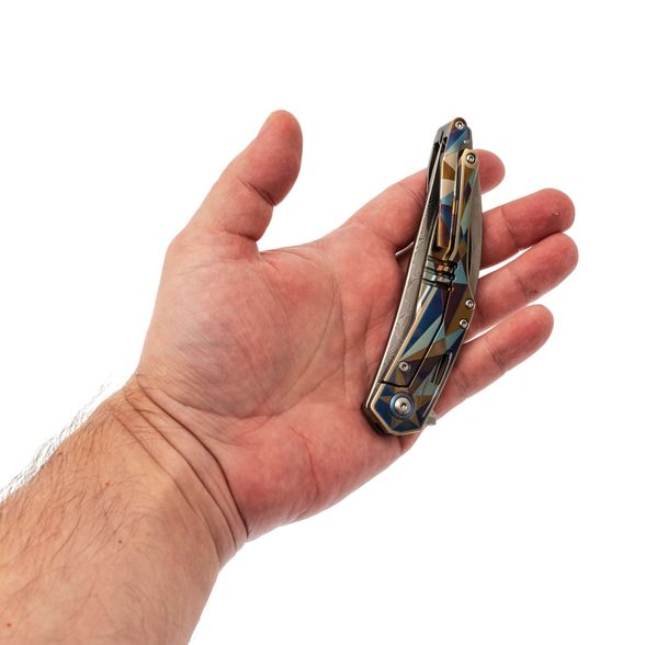 Титан. Лёгкий, прочный и абсолютно устойчивый к коррозии металл. Благодаря ему нож ощущается надёжным, но не тяжёлым. Титан также придаёт рукояти приятное ощущение «живого» металла при касании.