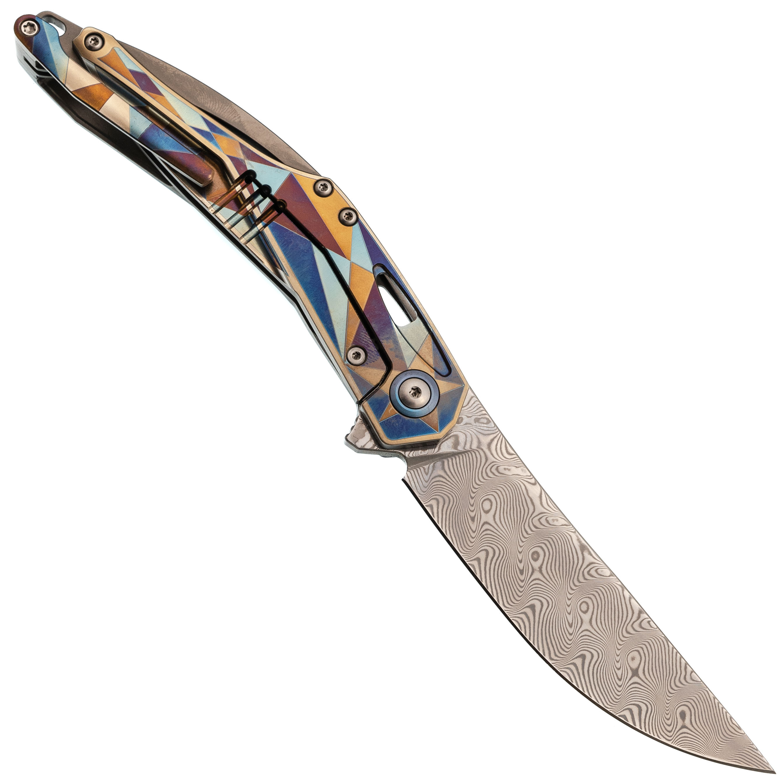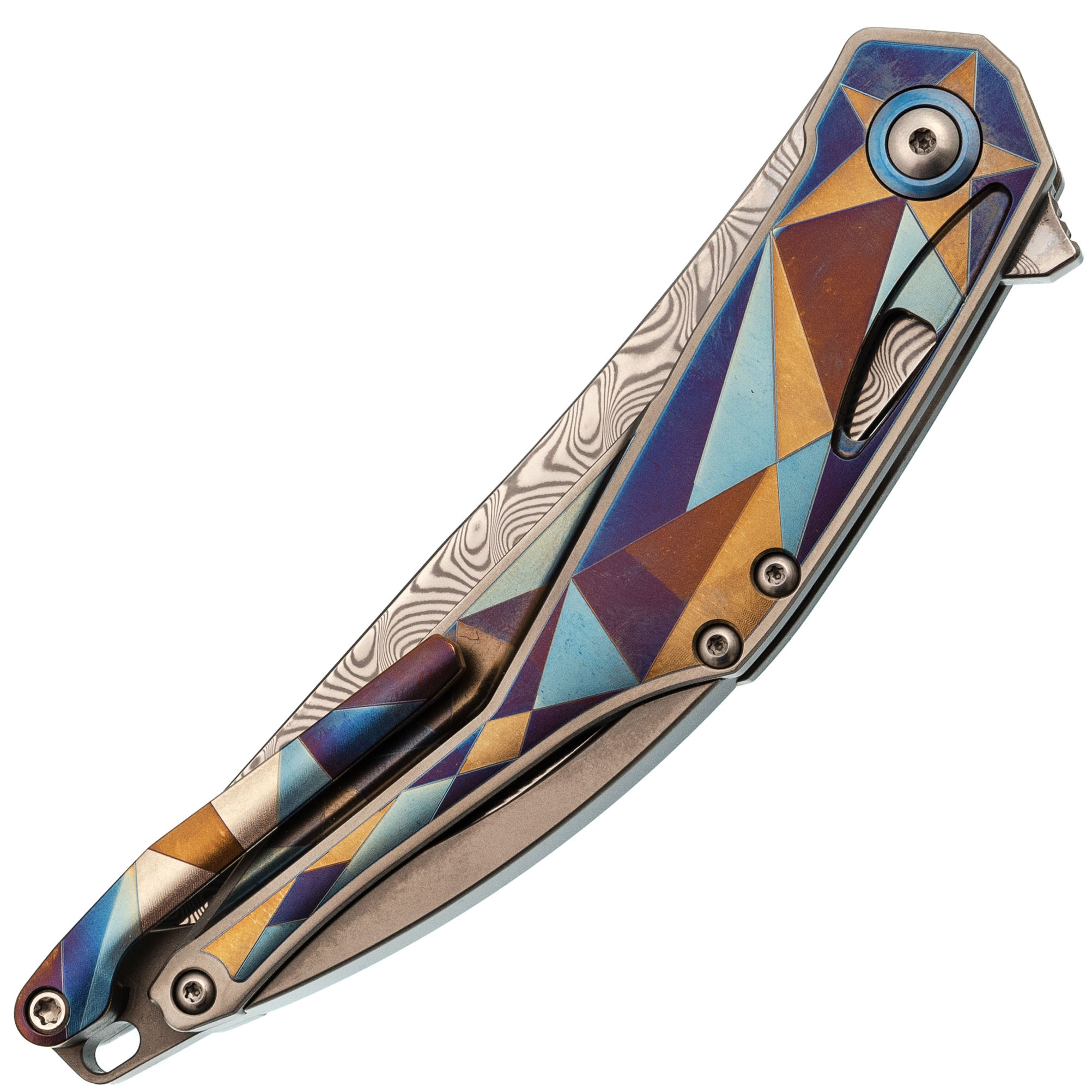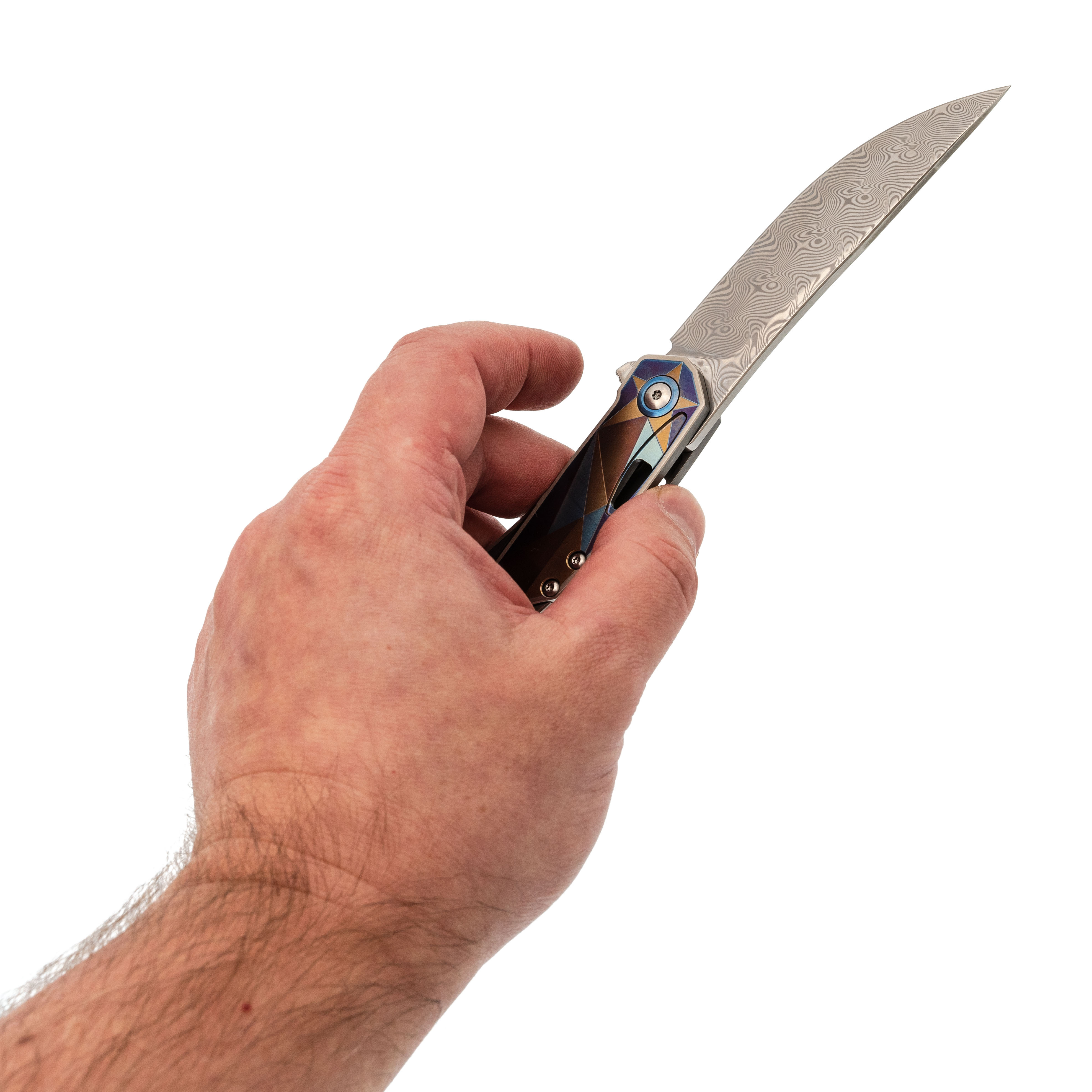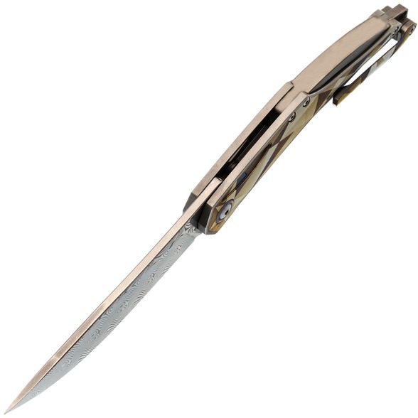 Титан. Лёгкий, прочный и абсолютно устойчивый к коррозии металл. Благодаря ему нож ощущается надёжным, но не тяжёлым. Титан также придаёт рукояти приятное ощущение «живого» металла при касании.