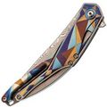 Рукоять - отдельная история. Её изогнутая форма ложится в ладонь естественно, без давления на пальцы. Фрезеровка и отверстия делают конструкцию легче, а гравировка в виде геометрического узора добавляет строгости и точности образу. Две клипсы дают возможность носить нож в любом положении - практично и продумано до мелочей.