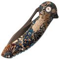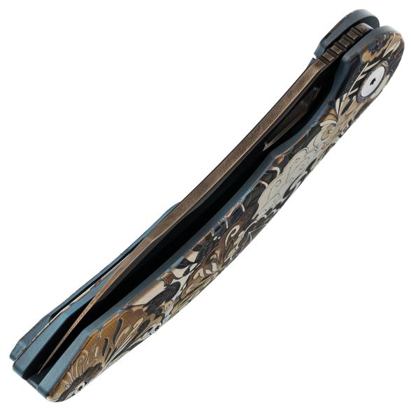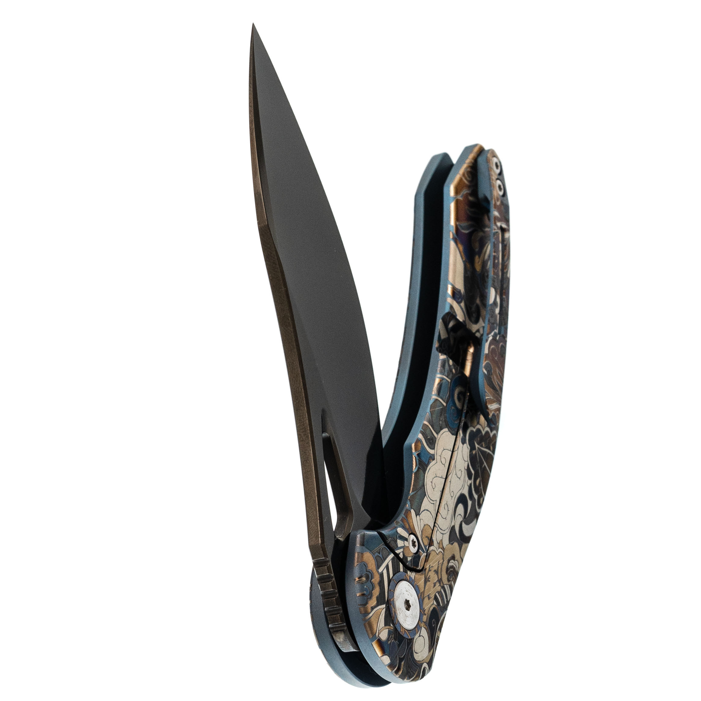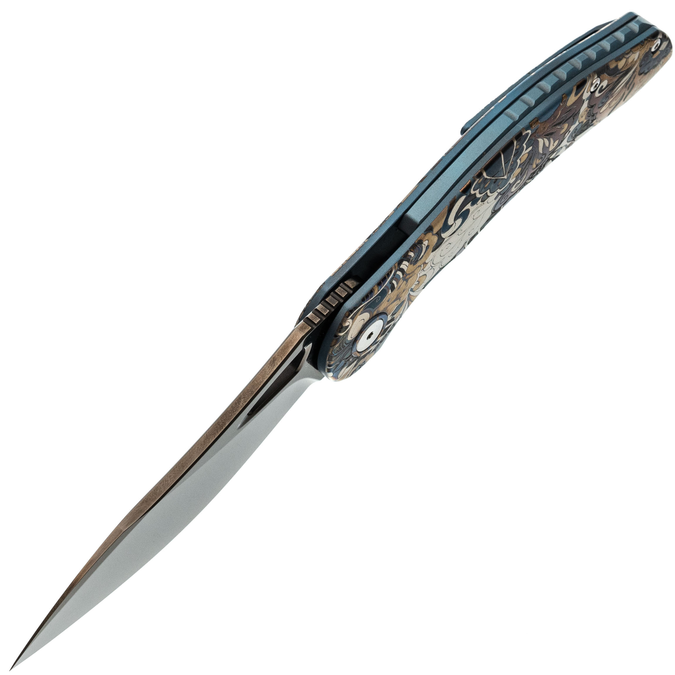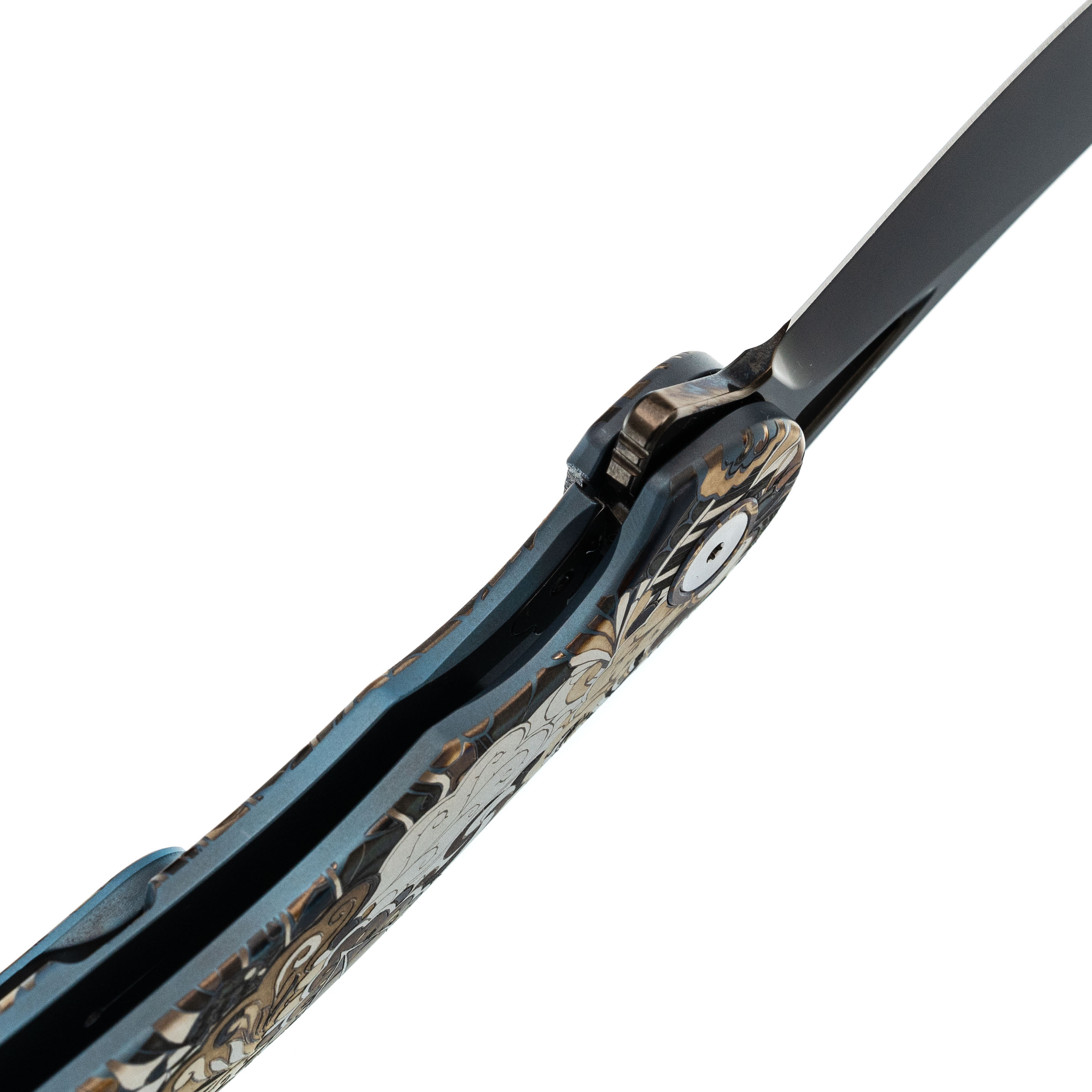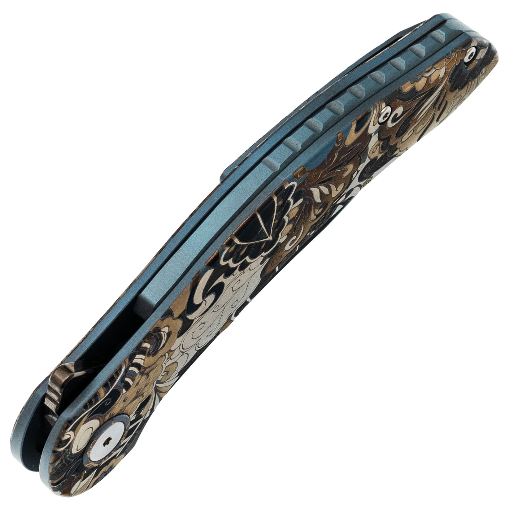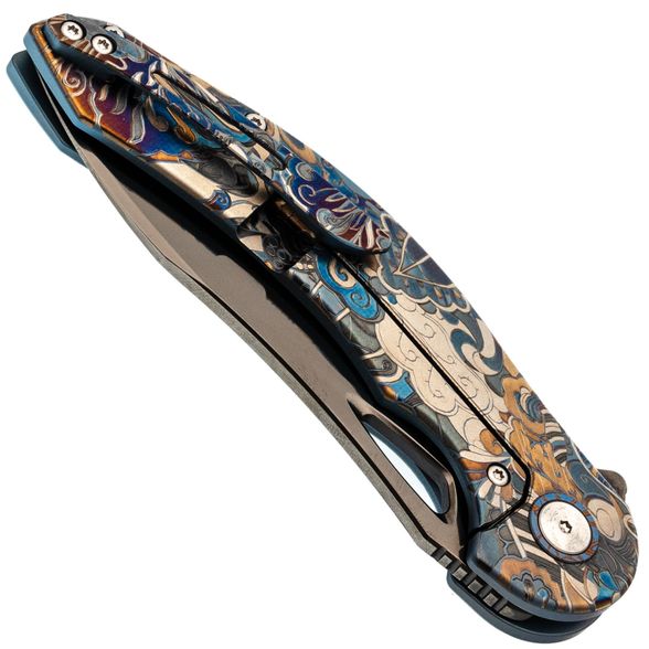 Титан - материал, который не ржавеет, не тускнеет и сохраняет вид долгие годы. Он лёгкий, но прочный, поэтому нож почти не ощущается в кармане. На рукоять нанесена узорная лазерная гравировка, придающая модели выразительность и индивидуальность.