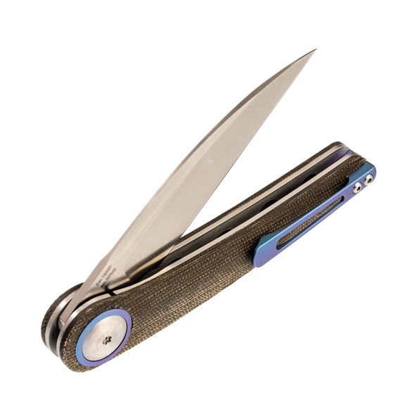 Складной нож Artisan Cazador, сталь AR-RPM9, рукоять Micarta - стильный складной карманный нож EDC. Подходит для повседневного использования, подходит для решения практически любых задач - резки коробок, тяжелого пластика или веревок, для приготовления пищи. Можно использовать в качестве инструмента для выживания, кемпинга, походов, тактики, работы или идеального подарка. Надежное лезвие из нержавеющей стали AR-RPM9, обеспечивает бритвенную остроту. Рукоятка имеет эргономичный дизайн и обеспечивает надежный захват и удобство в руке, простоту эксплуатации. Карманные ножи для ежедневного ношения имеют простой и надежный замок, он плавно открывается и жестко фиксируется, что предотвращает неожиданное закрытие.