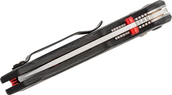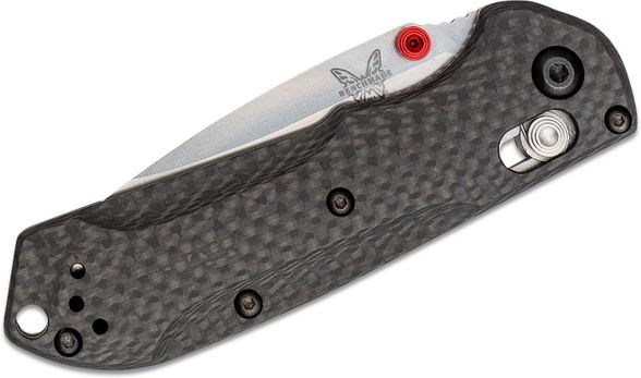 Складной нож Benchmade Mini Freek, сталь CPM-S90V, рукоять - это роскошная модель популярной модели 565. Он имеет фрезерованную рукоятку из углеродного волокна с красными проставками и шипами для большого пальца. Нож оснащен знаменитым замком AXIS Lock от Benchmade и двусторонней карманной клипсой, что делает его по-настоящему универсальным. Клинок изготовлен из высококачественной нержавеющей стали CPM-S90V. Особенности: Лезвие типа "дроп-пойнт" CPM S90V с покрытием стоунвош. Двойной шип-открывалка для большого пальца. Накладки рукояти из углеродного волокна. Герметичный замок AXIS. Реверсивная карманная клипса tip-up.