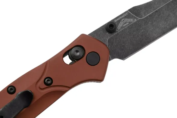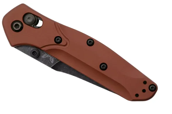Запатентованный замок Axis-Lock - одна из визитных карточек Benchmade. Конструкция основана на поперечном штифте, который надёжно фиксирует клинок в открытом и закрытом положении. Замок отличается лёгкостью управления: клинок можно открыть одной рукой за счёт шпеньков или инерционным движением самого замка, что особенно удобно в рабочих условиях. Axis-Lock славится долговечностью и износостойкостью - механизм рассчитан на многократное использование без потери плавности работы.