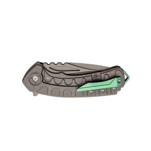 Lanyard Hole — отверстие или приспособление в рукояти ножа для страховочного корда или ремня., Titanium Pocket clip — титановая клипса для ношения ножа на поясе или кармане, Бэкспейсер из титанового сплава 6Al4V Titanium, Ограничитель хода фрейма, Система защиты от случайного открытия (Detent ball)