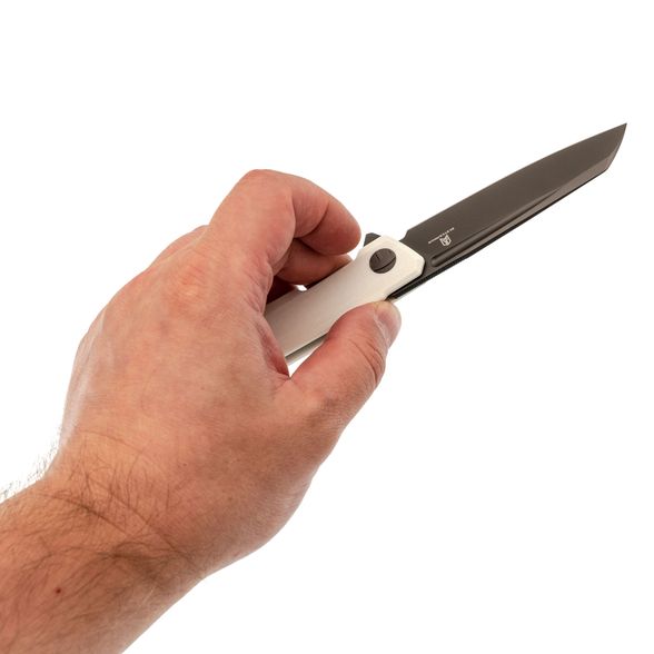 Клинок выполнен в форме Sheepsfoot, что обеспечивает точный контроль при работе и минимизирует риск повреждения кончика. Толщина обуха 3.2 мм придает конструкции дополнительную жесткость, делая ее устойчивой к нагрузкам. Защитное покрытие Grey PVD снижает влияние внешних факторов и придает поверхности глубокий, аккуратный оттенок, подчеркивающий современный стиль изделия.