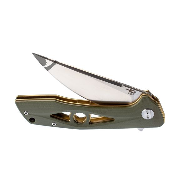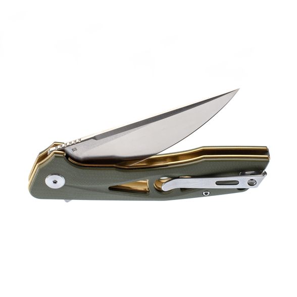 Складной нож Bestech Eye of Ra Green, сталь D2, G10 - это максимально плоская и компактная модель, которую удобно использовать в городской среде. Здесь ведь что главное? Правильно - удобство ношения, потому что 90% времени ваш нож будет проводить в кармане брюк или куртки. А значит он должен иметь небольшой вес и компактные размеры. Здесь все это присутствует в полной мере. Нож имеет несколько интересных фишек, на которые стоит обратить особое внимание. Во-первых, он оснащен флиппером для моментального приведения в рабочее положение. Во-вторых, в тыльной части есть отверстия для темляка или подвеса. В-третьих, на обухе расположено фальшлезвие, что значительно расширяет функционал ножа.