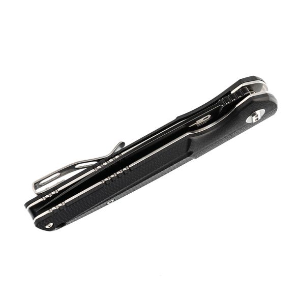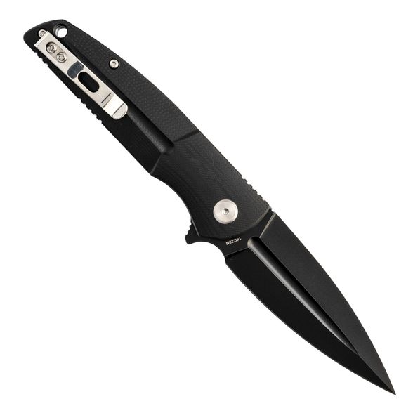 Складной нож Bestech Fin, сталь 14C28N Black, G10 Black содержит в себе несколько интересных и очень крутых фишечек. Во-первых, это конечно клинок кинжального типа. Симметричная форма и ромбическое сечение создают клинку брутальный и даже немного агрессивный вид. Отдельным стилистическим решением является фрезерованный дол, который расположен на каждой стороне. Во-вторых, материал рукояти — это тактический стеклотекстолит. Одна из особенностей этого материала заключается в том, что он хорошо фиксируется даже мокрой и грязной рукой. В-третьих, нож имеет максимальный спектр применения: от выполнения бытовых до тактических задач. Если вы ищите нож, который станет помощником в любой ситуации, вам стоит обратить внимание на эту модель.