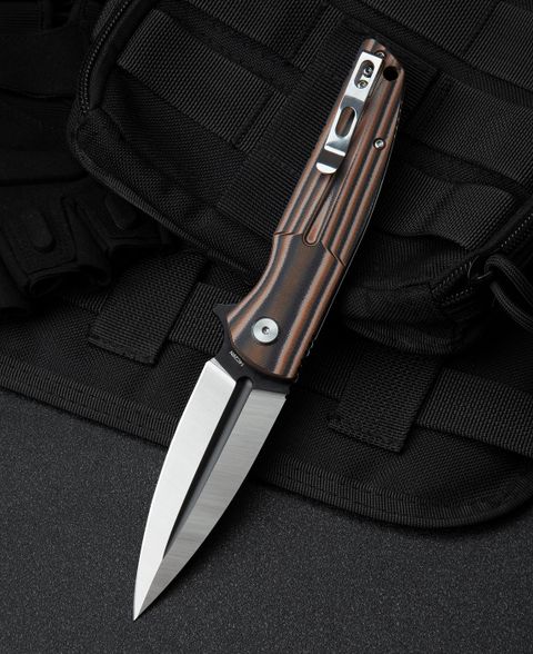 Складной нож Bestech Fin, сталь 14C28N Black/Satin, G10 Orange включает в себя несколько крутых фишек, о которых нужно сказать отдельно. Во-первых, накладки рукояти выполнены из многослойной микарты, что в настоящее время является одним из крутых ножевых трендов. Во-вторых, клинок кинжальной формы обладает фальшлезвием по всей длине обуха, а острый кончик обеспечивает высокую проникающую способность. В-третьих, нож имеет максимально плавный ход в процессе открывания. Клинок просто "выстреливает" и моментально приходит в рабочее положение. В-четвертых, рукоятка с глубокой подпальцевой выемкой обеспечивает уверенную фиксацию в процессе работы.