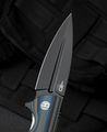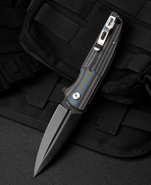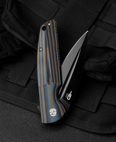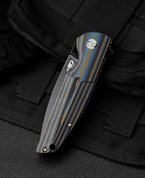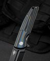 Складной нож Bestech Fin, сталь 14C28N BlackWash, G10 Blue имеет симметричный клинок, на котором спуски выведены с обоих сторон. Такая особенность придает ножу брутальную и агрессивную внешность. Эту модель можно смело рекомендовать для покупки в том случае, если вы придаете большое значение стильным аксессуарам. Ваши друзья и коллеги обязательно обратят внимание на такой нож. Однако, режущая кромка образована только с одной стороны, что вы могли купить эту модель без дополнительных разрешений. Накладки рукояти сделаны из двухцветной микарты, что делает этот нож еще более привлекательным.