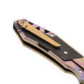 СКЛАДНОЙ НОЖ BESTECH FRACTAL BT1907C, СТАЛЬ S35VN, РУКОЯТЬ ТИТАН обладает полноценной эргономичной рукояткой, что обеспечивает максимальное удобство при выполнении силовой работы. Две глубокие подпальцевые выемки обеспечивают полный контроль при передаче усилия от руки на режущую кромку. Эту модель можно использовать как в городе, так и на полевом выезде. Нож одинаково хорошо справляется с бумажной работой и строгание древесины. Если вы ценитель сигар, то нож легко справится с ровным отрезом кончинка. Если же вы любите ковыряться в саду, то сухие ветки для такого ножа также не составят труда. К тому же за счет плоской формы и небольшого веса нож удобно размещается даже в кармане рубашки.