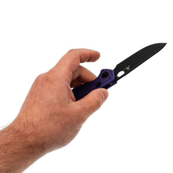 - Рукоять выполнена из G10 — прочного и лёгкого материала, сохраняющего внешний вид даже при интенсивной эксплуатации.