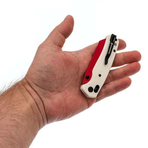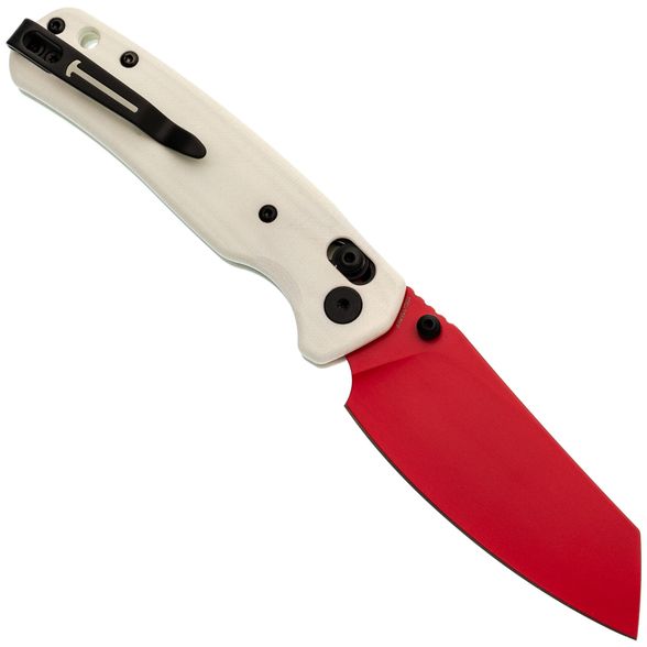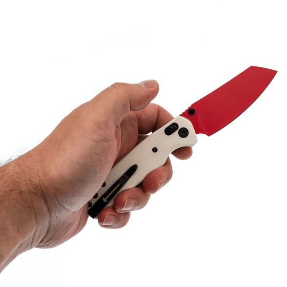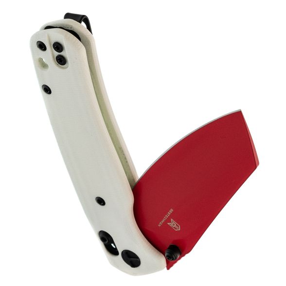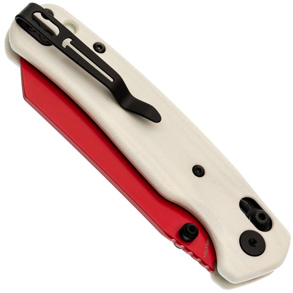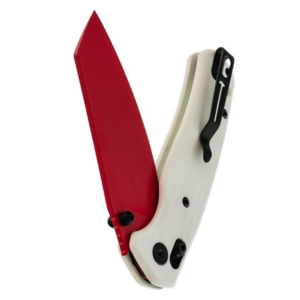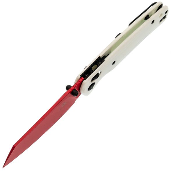 Эта версия Cicada's Wing впечатляет сочетанием белоснежной рукояти и яркого красного покрытия клинка. Такой контраст визуально подчёркивает форму ножа и делает его легко узнаваемым. Несмотря на броский внешний вид, модель остаётся практичным инструментом для ежедневного использования, выполненным из качественных современных материалов.