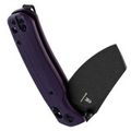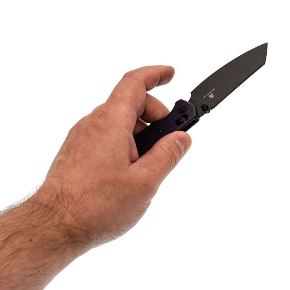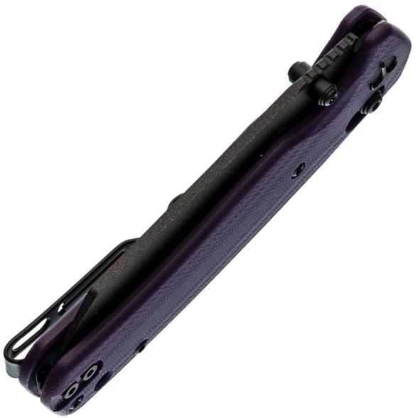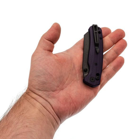 Нож в исполнении с фиолетовой рукоятью и чёрным клинком выглядит нестандартно, но при этом сбалансировано. Цветовая гамма подчёркивает индивидуальность владельца, а технические характеристики позволяют использовать его как полноценный EDC-инструмент.