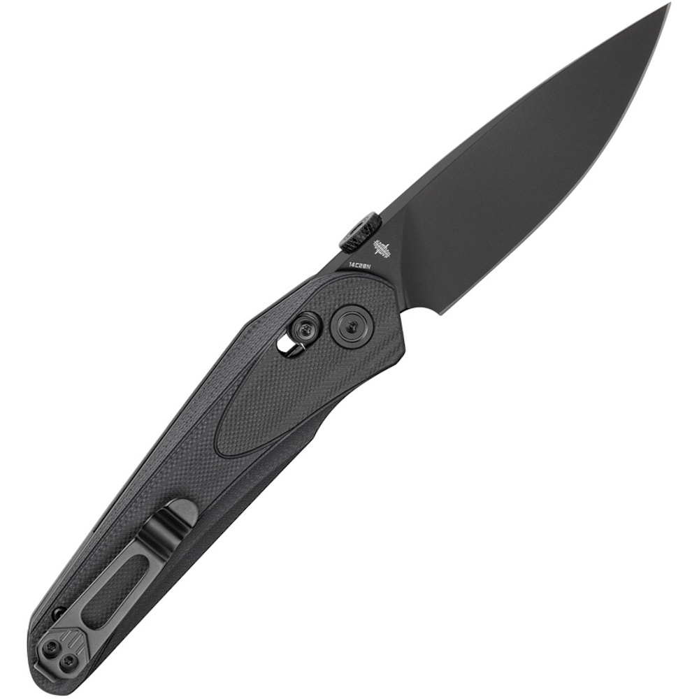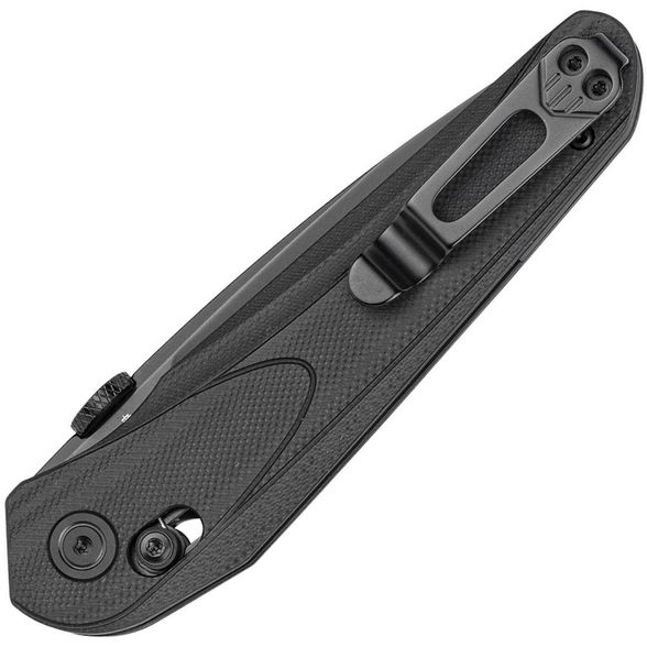 Чёрная рукоять из G10 обладает выраженной текстурой, обеспечивающей надёжный хват даже в условиях повышенной влажности. Анатомическая форма способствует комфортному удержанию, снижая нагрузку на кисть при длительном использовании. Конструкция продумана с учётом баланса между компактностью и удобством, а глубокая посадка карманной клипсы позволяет надёжно фиксировать инструмент при переноске, не нарушая общей эргономики.