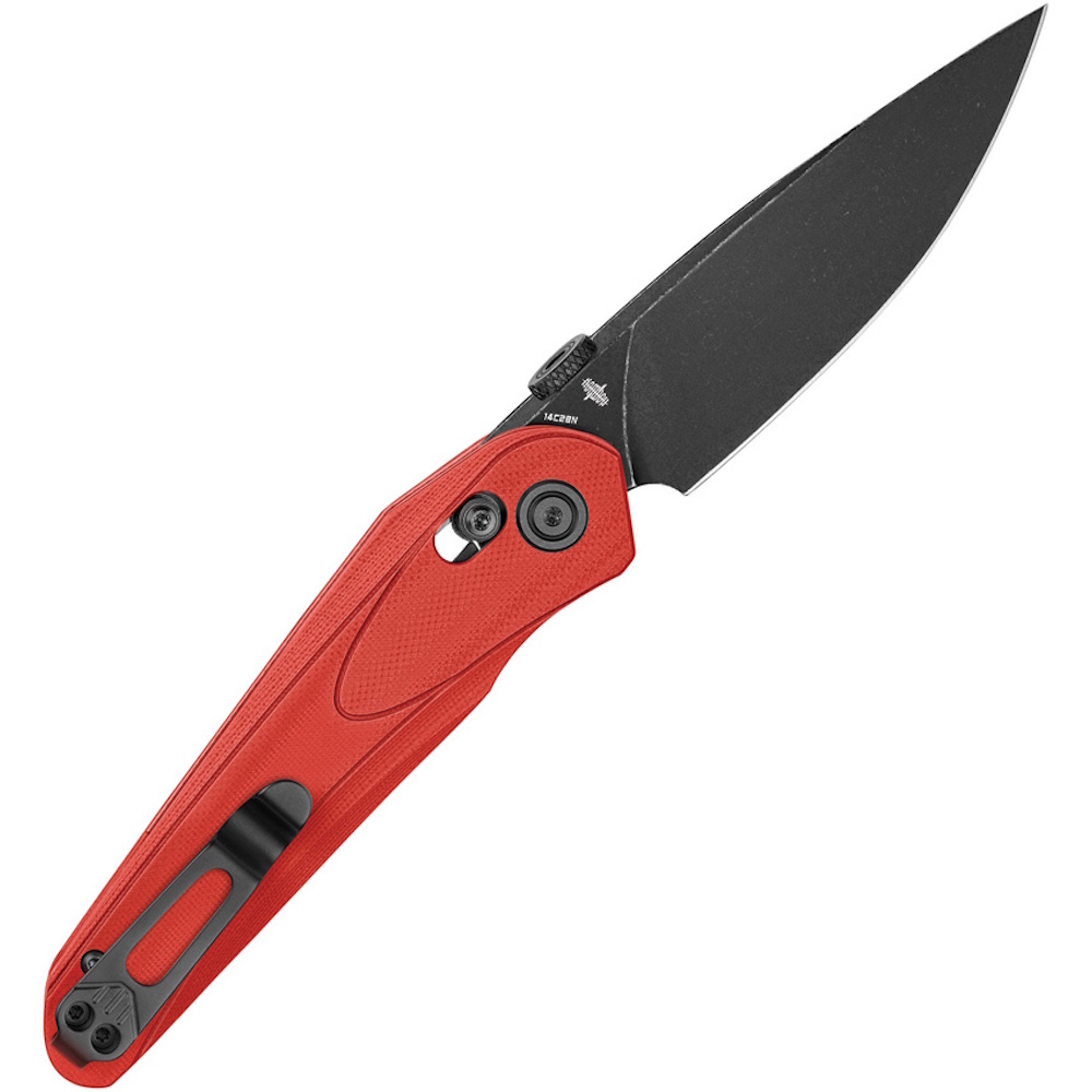 Красная рукоять из G10 не только визуально выделяется, но и обеспечивает уверенный хват благодаря выраженной текстуре и анатомической форме. Конструкция продумана таким образом, чтобы удобно ложиться в ладонь, снижая усталость при длительном использовании. Глубокая посадка карманной клипсы позволяет надёжно фиксировать инструмент в кармане или на снаряжении, не нарушая общего баланса и эргономики.