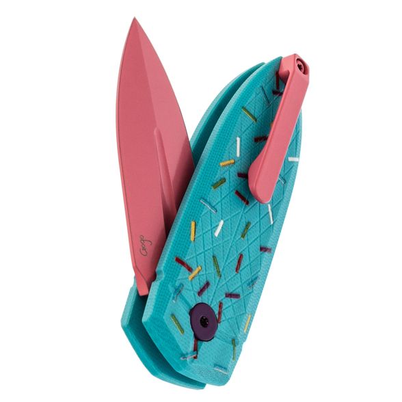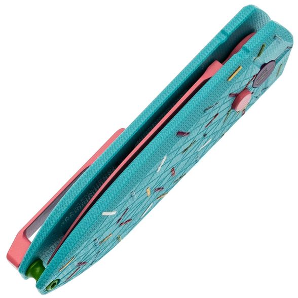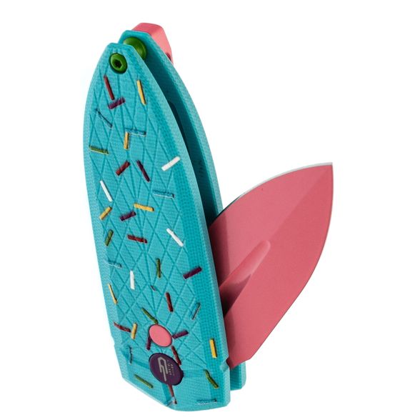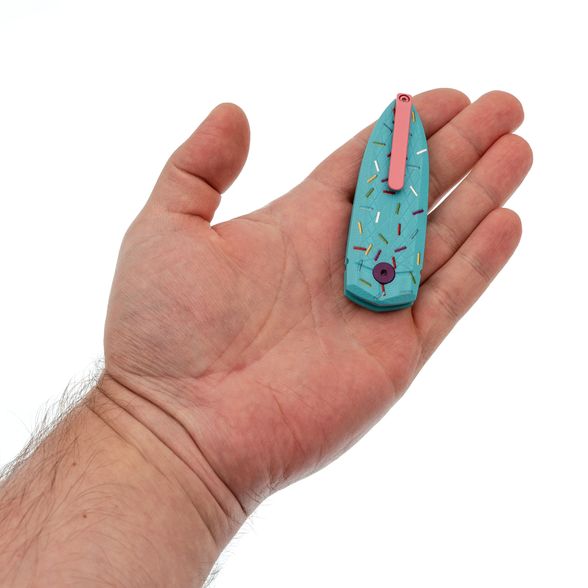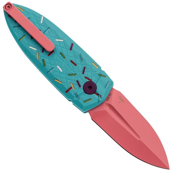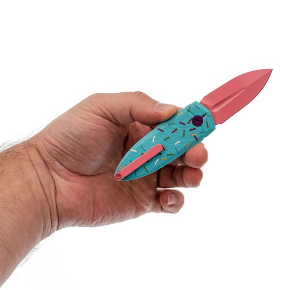 Ququ — это не только нож, но и эффектное дизайнерское высказывание. Созданный в коллаборации дочери основателя бренда Bestech и польского мастера Ostap Hel, он вдохновлён образом цикады и отражает в себе гармонию формы и содержания. Внешний вид модели моментально привлекает внимание — яркий розово-голубой окрас с эффектом "пончика", а также рукоять с посыпкой делают его уникальным аксессуаром для всех, кто ценит оригинальные вещи с характером.