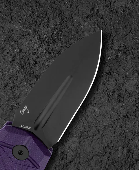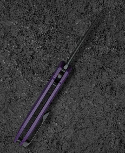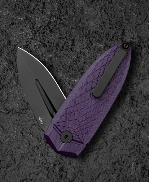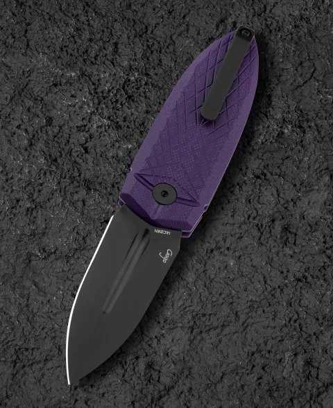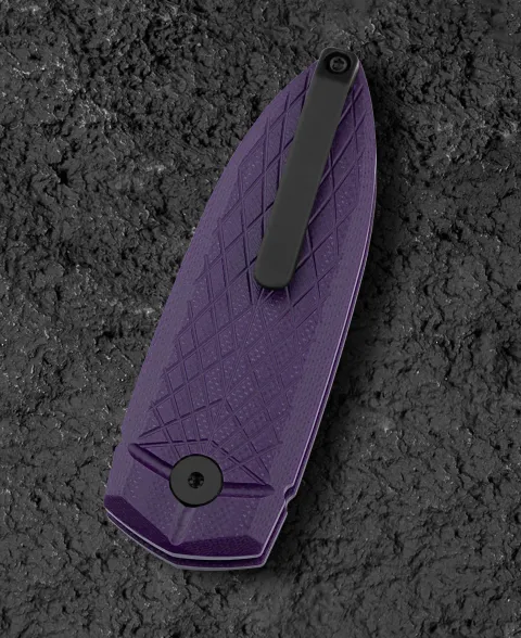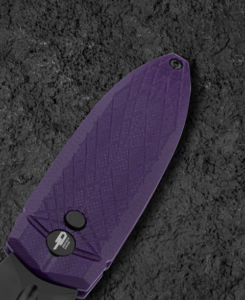 QUQU - симбиоз современного дизайна и природных мотивов: ручка выполнена из G10 редкого фиолетового оттенка, а клинок покрыт чёрным защитным слоем. Идея принадлежит дочери основателя Bestech, а воплощение - польскому дизайнеру Ostap Hel.