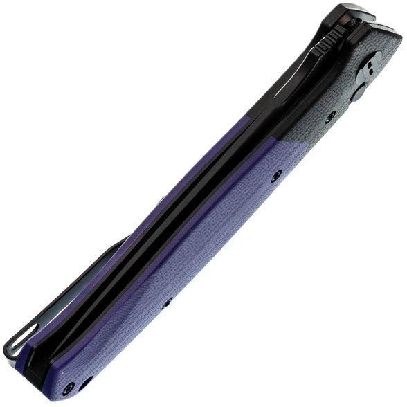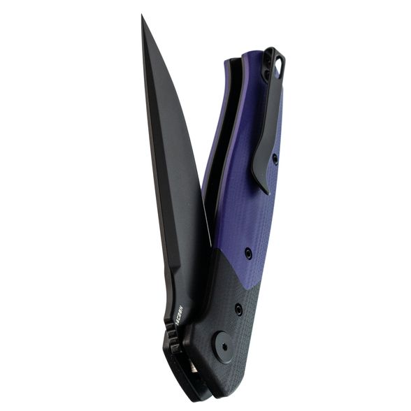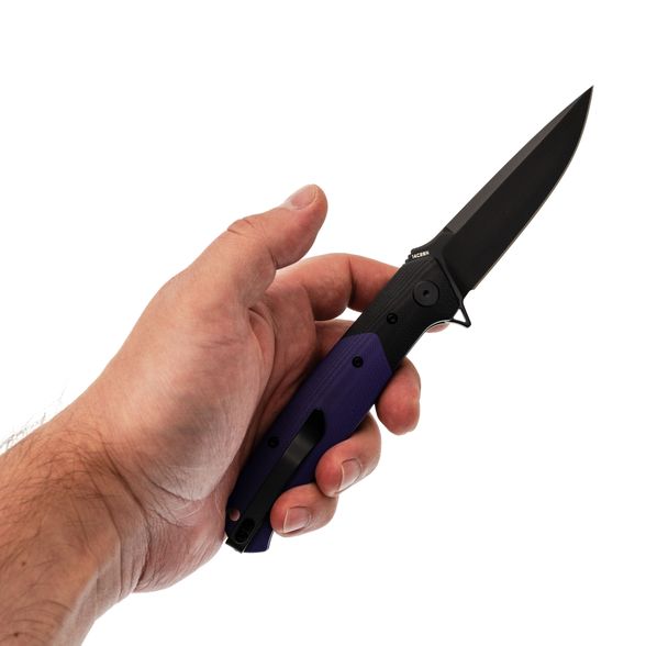 Выбор стали 14C28N — это компромисс между стойкостью к износу, коррозионной устойчивостью и простотой в обслуживании. Она легко правится и держит заточку на достойном уровне. Эргономичная рукоять выполнена из двухцветного G10 — прочного, надёжного и приятного на ощупь материала. Фиолетово-чёрная расцветка добавляет характер и делает нож визуально узнаваемым.