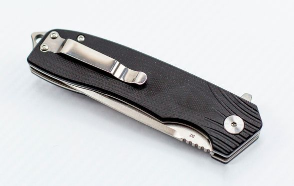 Нож изготовлен из высокопрочной стали, что гарантирует долговечность и надежность. Твердость лезвия составляет 58-60 HRC, он сохраняет остроту при интенсивном использовании. Для рукояти используется материал G10 — прочный и легкий, который обеспечивает захват в условиях повышенной влажности.