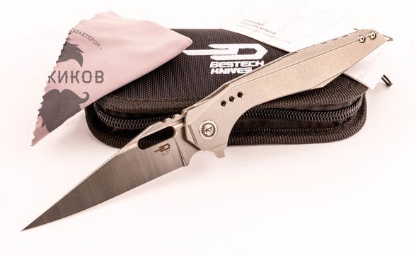 СКЛАДНОЙ НОЖ BESTECH MALWARE BT1902A, СТАЛЬ S35VN, РУКОЯТЬ ТИТАН — галантный красавец, который обладает острым жалящим кончиком и сильным стальным характером. Инженеры бренда вложили в эту модель несколько интересных технологически важных моментов. Во-первых, осевой винт оснащен керамическим подшипником, что значительно ускоряет приведение клинка в рабочее положении и повышает общий ресурс надежности. Во-вторых, здесь используются металлы премиум сегмента: клинок из порошковой стали американского производства и рукоятка из облегченного сплава на основе титана. Такое сочетание наделяет нож яркой и харизматичной внешностью. В-третьих, узкий и длинный клинок имеет острый кончик, который значительно расширяет функционал этого ножа.