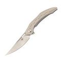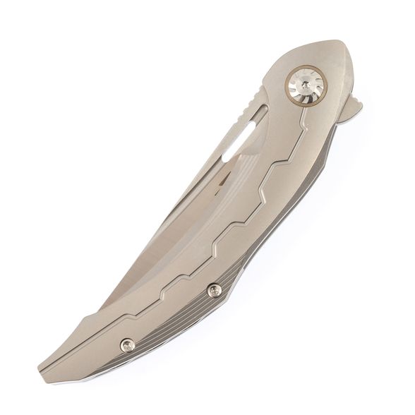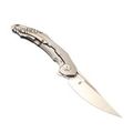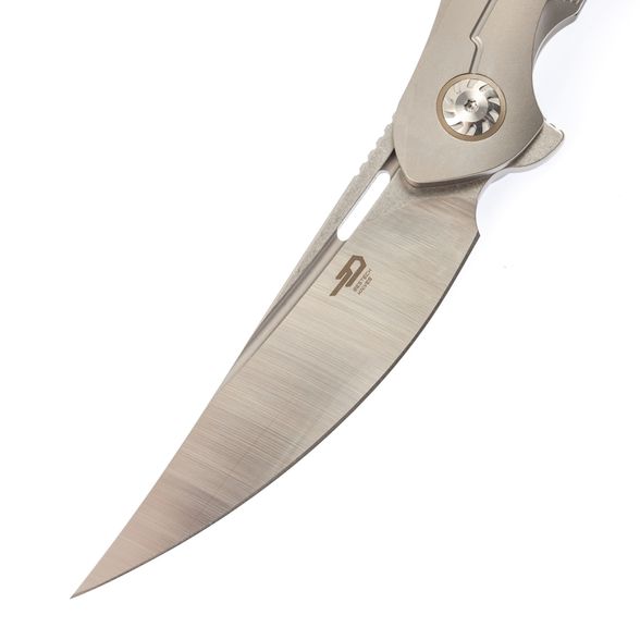 Складной нож Bestech Marukka BT2002A, сталь M390, рукоять титан - имеет кованую рукоять из бронзового титана и сталь M390 с черным покрытием stonewash. Это второй дизайн карманного ножа Marukka от Bestech Knives. Получив футуристический дизайн от Грабарского "Комбу" Гжегожа, персидский стиль удачно обыгрывается этим клинком с трейл-пойнтом. Острие клинка позволяет легко наносить колющие и режущие удары. Флиппер-открывалка Marukka работает очень плавно и легко, благодаря керамическим шарикоподшипникам. В дополнение к титановой фурнитуре, титановая карманная клипса Marukka упрощает переноску. Без сомнения, это отличный выбор для вашего EDC, если вы ищете надежный и долговечный карманный нож.