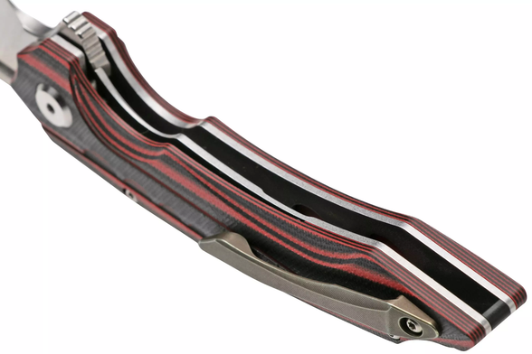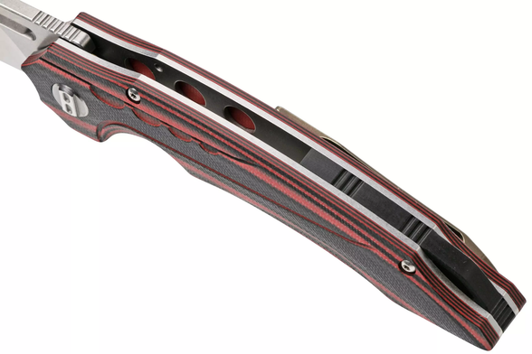 Lanyard Hole — отверстие или приспособление в рукояти ножа для страховочного корда или ремня., Titanium Pocket clip — титановая клипса для ношения ножа на поясе или кармане, Бэкспейсер из стеклотекстолита G-10, Система защиты от случайного открытия (Detent ball)