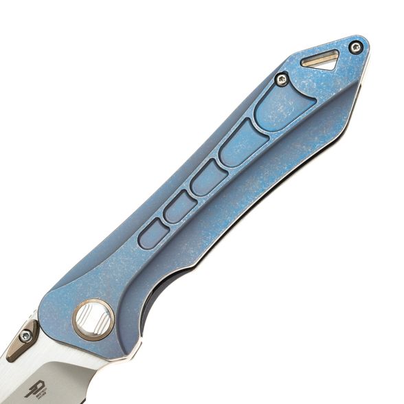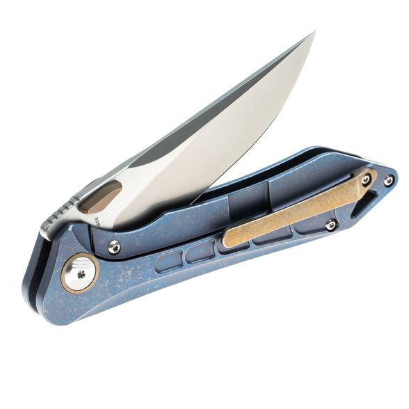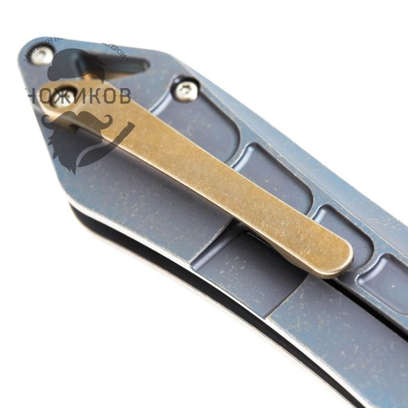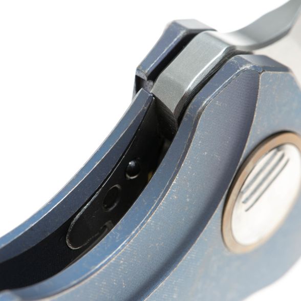 Рукоять изготовлена из титана, что делает ее невероятно прочной и легкой. Титановая клипса обеспечивает удобство ношения. Особый стиль рукояти придает цепкая фрезеровка, которая не только выглядит технологично, но и обеспечивает надежный хват. Замок Frame-Lock, выполненный из того же титана, гарантирует высокую прочность и надежность ножа. Этот нож - отличный пример сочетания функциональности, качества и стильного дизайна.