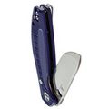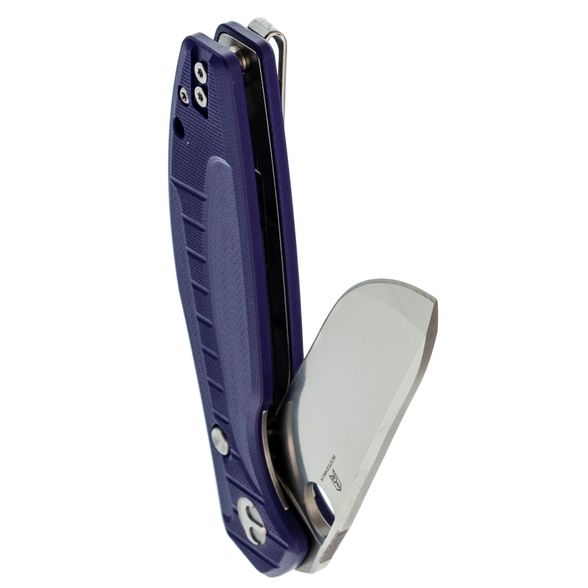 Drop-Point — универсальный профиль клинка, подходящий для большинства повседневных задач. Прямые высокие спуски позволяют выполнять чистый и уверенный рез, а ближе к кончику конструкция переходит в комбинированные спуски, повышающие прочность на излом. Клинок открывается с помощью круглого отверстия — решение простое и надёжное.