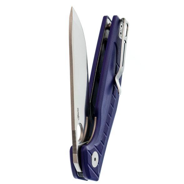 Рукоять отличается эргономичной формой и удобными фрезеровками, обеспечивающими контроль и комфорт при использовании. Механизм фиксации Liner-Lock работает с помощью кнопки, что снижает вероятность случайных травм и позволяет открывать нож плавно, с инерцией. Установлена клипса с возможностью перестановки и темлячное отверстие для дополнительной функциональности.