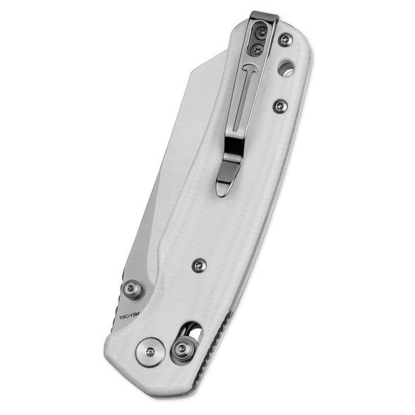 Редкий белый G10 придаёт ножу эстетически чистый и современный вид. Такой нож хорошо смотрится в городской среде, выделяется на фоне типовых моделей, оставаясь при этом надёжным и практичным инструментом.