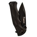 Лезвие, выкованное из стали 440. Это нержавейка, используемая в производстве подобных атрибутов. Материал отличается твердостью до 55-56 HRC, который не нужно затачивать на протяжении десятков лет. Стилизован фирменным логотипом. Защиту от царапин и грязи создает специальное покрытие черного цвета. Тип профиля клинка узнаваемый – Drop Point, легко проникающий в плоть, так как имеет форму пера с острым кончиком. Применен тип шлифа с вогнутыми спусками, поэтому он легко проходит в мягкие материалы.