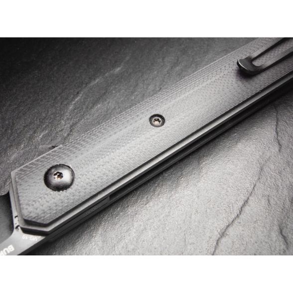Складной нож Boker Kwaiken Air G10 All Black входит в линейку Plus Kwaiken, разработанную Лукасом Бернли. Данная модель отличается облегченным весом, элегантным лаконичным дизайном и практичностью. Клинок с гладкой заточкой изготовлен из антикоррозийной стали VG-10 и имеет защитное покрытие EDP, что придает ему хорошую устойчивость к коррозии и механическую прочность. Для извлечения лезвия используется небольшой флиппер, а для его фиксации - механизм Liner-lock. Рукоять выполнена в виде стальных лайнеров, на которых зафиксиированы накладки из стеклотекстолита G-10. Нож с тонким клинком и рукоятью оснащен отверстием для корда и съемной клипсой для ношения на ремне или кармане.