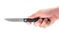 Rлинок изготовлен из нержавеющей стали 440A - популярного материала для повседневных ножей. Он хорошо справляется с типичными задачами и легко затачивается при необходимости. Вогнутые спуски обеспечивают уверенное резание, а узкая универсальная форма клинка делает нож удобным для точных работ. Открытие осуществляется при помощи флиппера - быстро, просто и одной рукой.