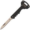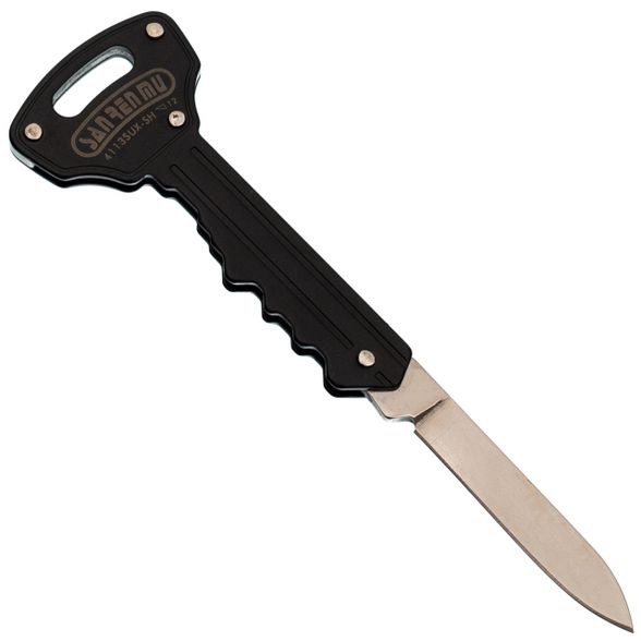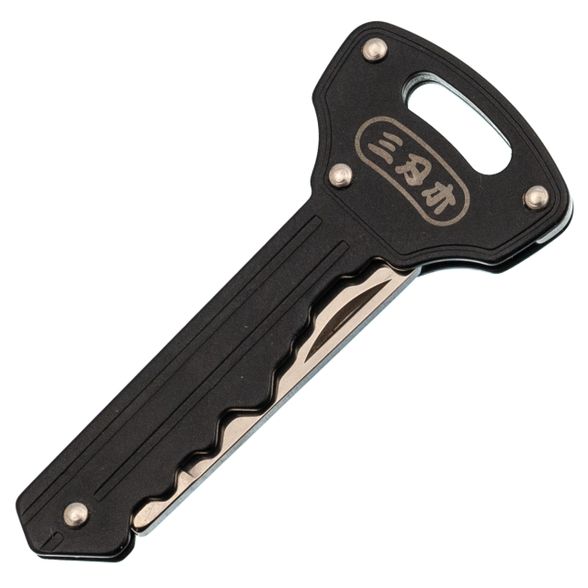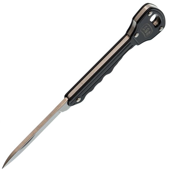 - Рукоять из стали 420. Цельнометаллическая конструкция здесь не просто дань надежности. Сталь 420 имеет достаточную твердость, чтобы на рукояти не оставались вмятины от соседства с ключами. При этом поверхность остается гладкой и не цепляется за карманы. Толщина рукояти минимальна, что и позволяет ножу выглядеть как обычный ключ.