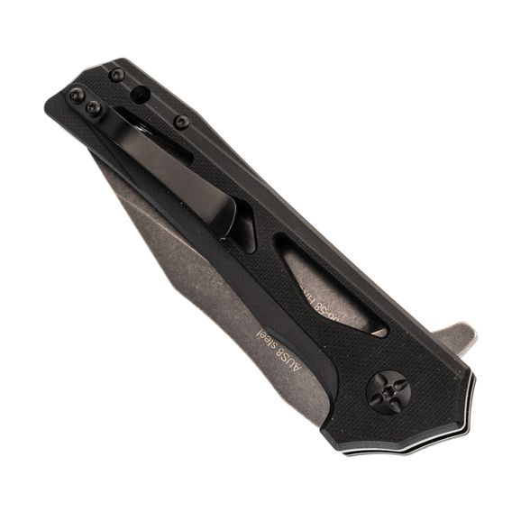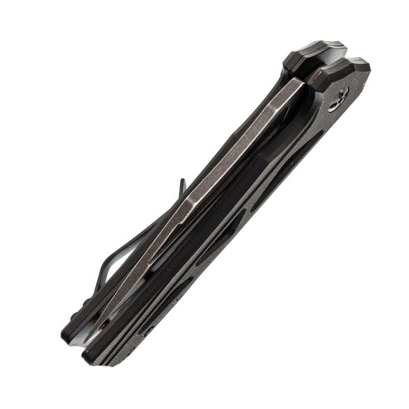 В открытом состоянии флиппер образует с рукояткой хорошо развитую одностороннюю гарду, которая предохраняет руку от соскальзывания на лезвие клинка. Клинок фиксируется надежным замком liner-lock, чо позволяет спокойно давать ему умеренно тяжелые нагрузки.