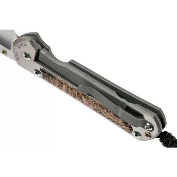 Lanyard Hole — отверстие или приспособление в рукояти ножа для страховочного корда или ремня., Titanium Pocket clip — титановая клипса для ношения ножа на поясе или кармане, Закаленный торец титанового фрейма, Система защиты от случайного открытия (Detent ball), Темляк