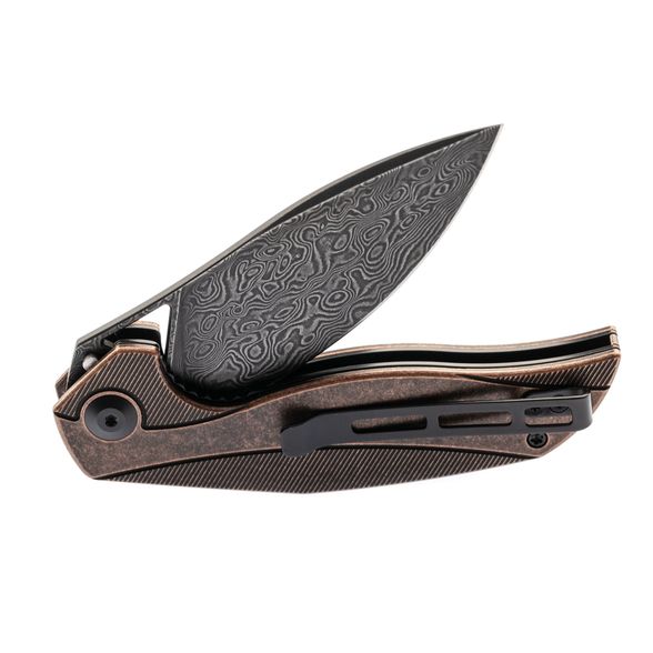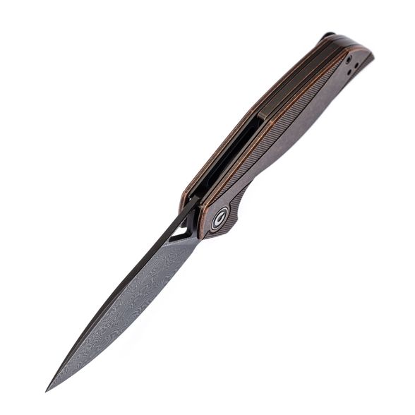 СКЛАДНОЙ НОЖ CIVIVI ANTHROPOS BLACK, DAMASCUS может впечатлить любого, кто хоть раз задумывался о покупке складного ножа. Здесь сочетаются несколько интересных моментов. Клинок из твердой дамасской стали обладает отличным резом. Его удобно использовать при работе по твердым и мягким материалам. Накладки рукояти выполнены из тактического стеклотекстолита, но за счет особой формы рифления и окраски, создается полная иллюзия, что перед нами медный сплав. Нож удобен для ношения в городских условиях благодаря надежной клипсе.