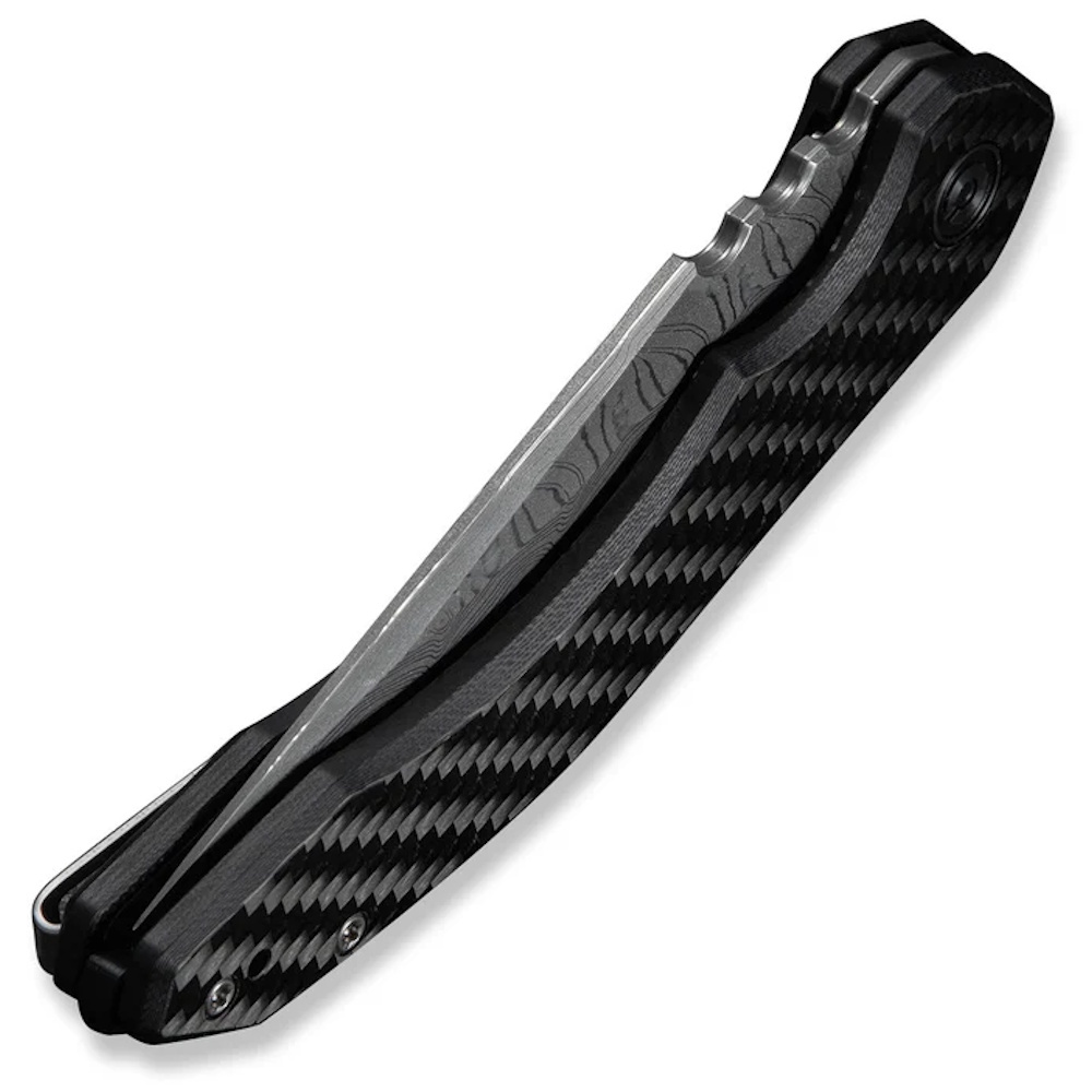 G10 с верхним слоем карбона. Стеклотекстолит обеспечивает жесткость и стабильность, не боится перепадов температуры и влаги. Ламинация плетёным карбоном добавляет аккуратную текстуру и изящный внешний вид.