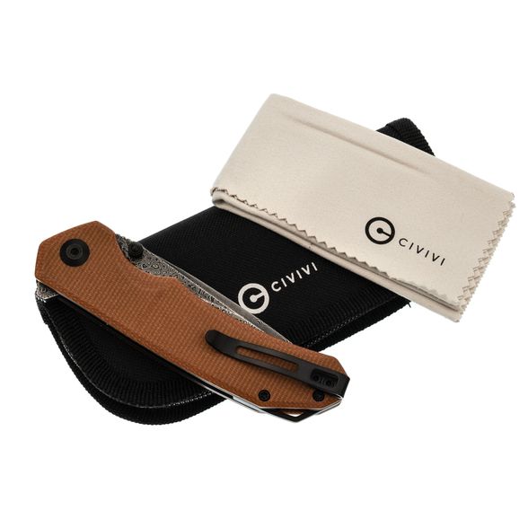 Складной нож CIVIVI Brazen - бренд CIVIVI специализируется на производстве бюджетных складников отличного качества, таких как эта модель Brazen liner lock. Механизм плавный, надежный и не вызывающий привыкания. Дизайн привлекателен и прост, что делает его отличным ножом для повседневного ношения. Особенности: клинок из темной дамасской стали в стиле танто; двойные шипы для большого пальца и флиппер-открывалка с подшипниками; грубая рукоять из черной микарты с удобными выемками для пальцев, обеспечивающими надежный хват; реверсивная карманная клипса для ношения справа или слева.