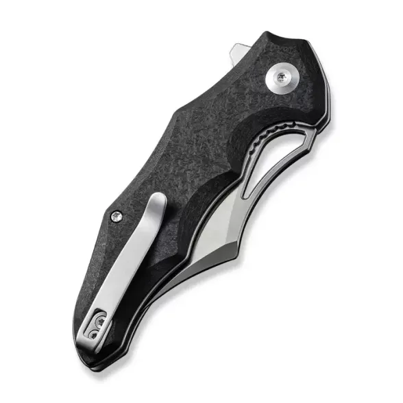 Нож оснащён переставляемой клипсой глубокой посадки, что позволяет носить нож не привлекая внимания окружающих, а то, что она утоплена в накладку позволяет ей очень мягко и не цепляясь садиться на карман.