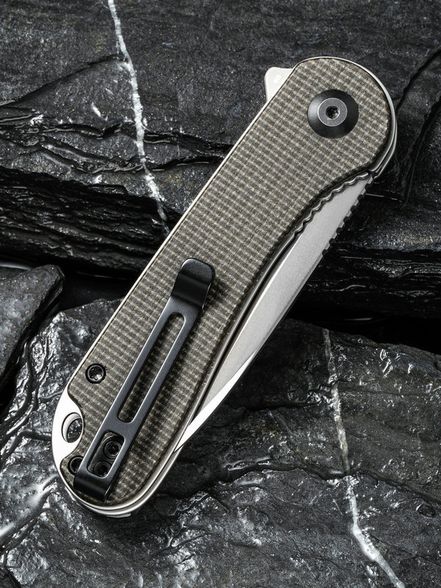 СКЛАДНОЙ НОЖ CIVIVI ELEMENTUM DARK GREEN MICARTA, D2 это интересная модель, которая сочетает в себе универсальность рабочего ножа, удобство городского EDC ножа и камуфляжно тактическую расцветку рукояти. Этот нож можно смело рекомендовать тем, кто нуждается в компактном и легком повседневном помощнике, который не занимает много места в кармане. Нож имеет длину клинка 75 миллиметров и весит всего 76 граммов.