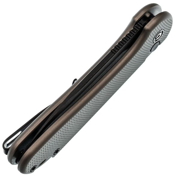Рукоять модели выполнена из алюминия темно-серого цвета, что придает ножу загадочный и элегантный вид. Алюминий — это легкий и прочный материал, который хорошо ложится в руку и обеспечивает комфорт при длительном использовании ножа. Он также обладает высокой стойкостью к коррозии, что делает нож надежным инструментом для повседневного ношения. Форма рукояти Elementum 2 нейтральна и универсальна, что означает, что нож будет комфортно лежать в руках большинства пользователей. Насечка на рукояти позволяет уверенно держать нож даже в влажных или грязных условиях. Замок Button-Lock предоставляет отличную возможность для быстрого и безопасного открытия и закрытия ножа с минимальными усилиями. Модель также оснащена переставляемой клипсой и темлячным отверстием, что значительно улучшает удобство ношения и использования.