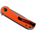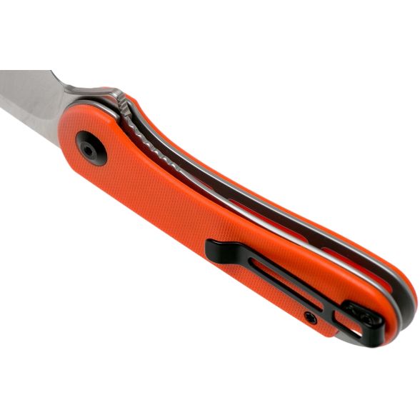 СКЛАДНОЙ НОЖ CIVIVI ELEMENTUM ORANGE, D2 выполнен из американской нержавеющей стали, которая пользуется популярностью во всем мире. Использование этой стали позволяет наделить клинок предсказуемыми характеристиками, которые практически не изменяются со временем. В состав сплава входит углерод и хром. Углерод придает стали вязкость и упругость. Хром отвечает за высокий уровень защиты от коррозии. Нож имеет тонкие накладки из ударопрочного пластика, которые обеспечивают уверенную фиксацию ножа в руке, но при этом не увеличивают объем. Нож понравится тем кто любит носить нож в часовом кармане джинс, кармане жилета или рубашки. Компактные размеры, плоский форм-фактор и небольшой вес не доставят дискомфорта при таком способе носки.