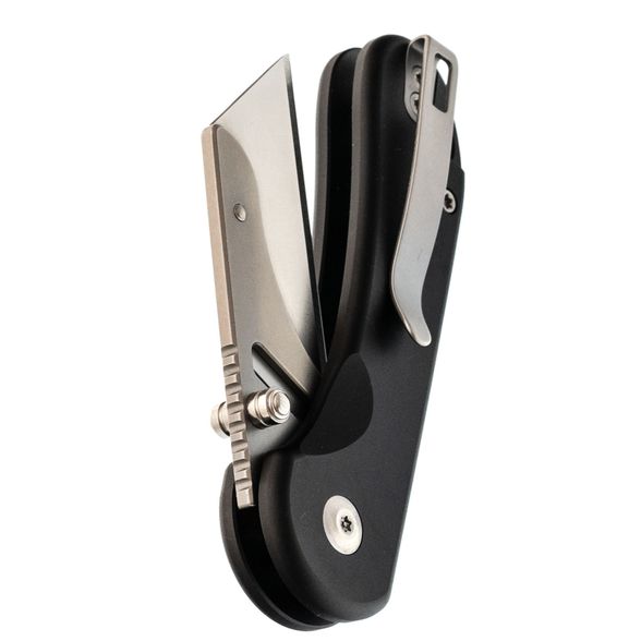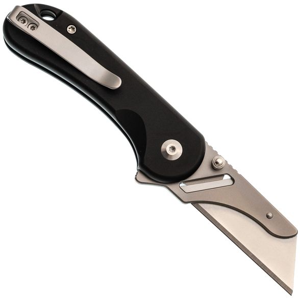 Основной особенностью клинка является тщательно сконструированный держатель, позволяющий использовать стандартные лезвия-трапеции, доступные практически в любом торговом пункте. В стандартной поставке предусмотрено 4 фирменных лезвия и 2 болта для надежной фиксации, а применение стали 6Cr13 гарантирует стабильное сохранение остроты. Уникальный способ открытия с помощью шпеньков с двух сторон и плавника делает процесс использования максимально удобным и быстрым.