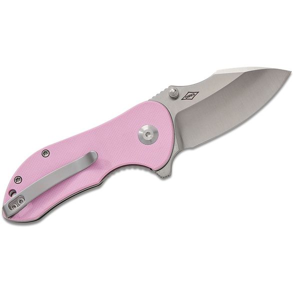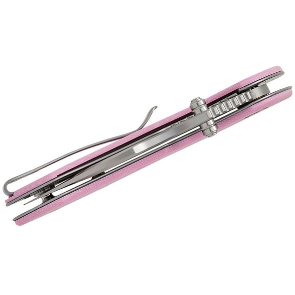 Рукоять выполнена из высокопрочного G10 в фирменном пудрово-розовом цвете, который выгодно выделяет Gordo среди других EDC-ножей. Продуманная форма и текстурирование поверхности обеспечивают надёжный хват и отсутствие скольжения. Модель снабжена прочной клипсой tip-up для уверенного ношения в кармане и лёгкого извлечения. Для тех, кто ценит детали, в конструкциив осевом узле модели находятся керамические подшипники, которые отвечают за молниеносное и плавное открытие ножа.