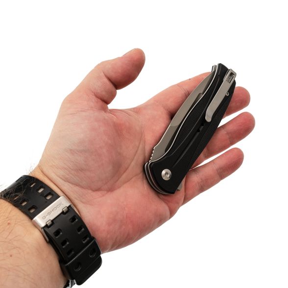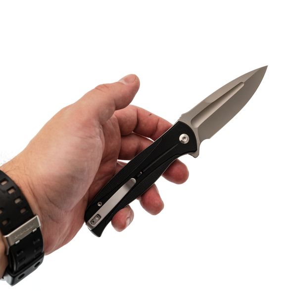 Рукоять изготовлена из стеклотекстолита G10, материала, широко используемого в производстве ножей высокого класса. G10 отличается высокой прочностью, легкостью и устойчивостью к воздействию влаги и химических веществ, что делает рукоять удобной и надежной в любых условиях. Фрезеровка на накладках обеспечивает дополнительное сцепление, позволяя уверенно удерживать нож даже в сложных ситуациях.